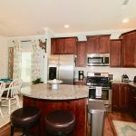 Upgraded kitchen includes beautiful staggered cabinets, granite counters, subway tile backsplash, kitchen island, stainless steel appliances: gas self-cleaning range, built-in microwave, dishwasher and side-by-side fridge.