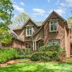 Enjoy daily golf course views—and your morning coffee—from the wrap-around veranda overlooking the 5th green at Warrior Golf Club. This custom brick home sits on 1.5 acres at the end of a quiet cul-de-sac, surrounded by mature trees and lush landscaping. Inside, the grand foyer opens to a formal dining room and a private office with fairway views. The great room features 20-ft ceilings, a gas fireplace, and expansive windows. The gourmet kitchen offers granite counters, gas cooktop, wall oven, and updated appliances. The main-level primary suite includes vaulted ceilings, an updated luxurious bath with marble floors, soaking tub, large shower, and two walk-in closets. Upstairs includes vaulted-ceiling bedrooms, a bonus room, and generous walk-in attic storage. Outdoor highlights include cypress decking on the veranda, irrigation system, an attached 2-car garage, and a detached 4-car tandem garage—perfect for car enthusiasts, workshop or storage. Cart path access offers scenic walks.